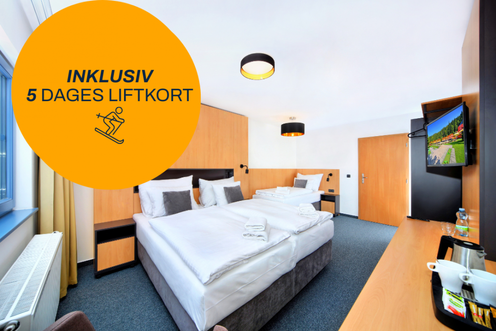 Ankomst Spindleruv Mlyn ca. 09.00 (busholdepladsen; taxa til hotellerne). Bagagen kan stilles i receptionen, I kan klæde om og tage direkte på ski, selvom værelset først er klar til check-in fra kl. 14:00. Bagagen opbevares sikkert, indtil værelset er klar. Morgenmad ved ankomst er ikke inkluderet. Når værelset er klar, kan I pakke ud og slappe af.